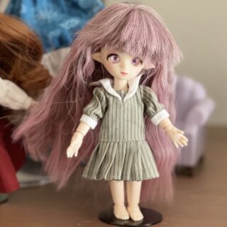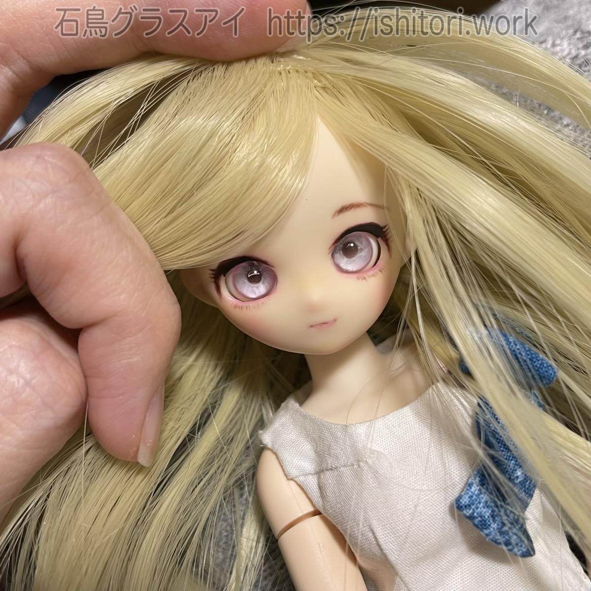 メイクはセルフで、1枚めはウィッグが作り途中の状態です。